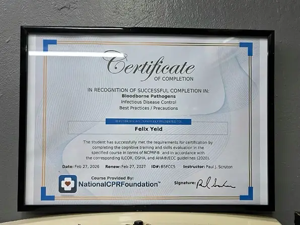 We are committed to offering the safest most sterile environment, keeping up with the latest infection prevention control protocols and renewing our blood borne pathogen training yearly.